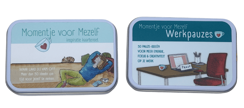 Daar ontstond de tweede kaartenset: Werkpauzes. Kleine ideeën om even los te komen van je werk en je hoofd weer ruimte te geven.